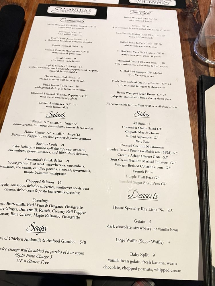 Samantha’s Tap Room & Wood Grill Menu